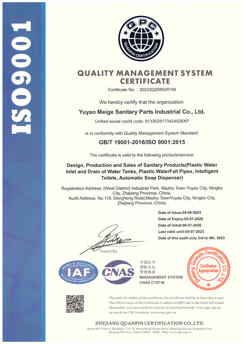 "91好色先生下载"創立於2002年,是ISO9001注冊廠家。公司秉承"環保、實效、簡潔、便利"的發展理念。20多年來業務發展多元化,並積極拓展國際市場,在國內成為業界大衛浴配件生產商之一,91好色视频软件遠銷歐洲、亞洲、中東、非洲市場。